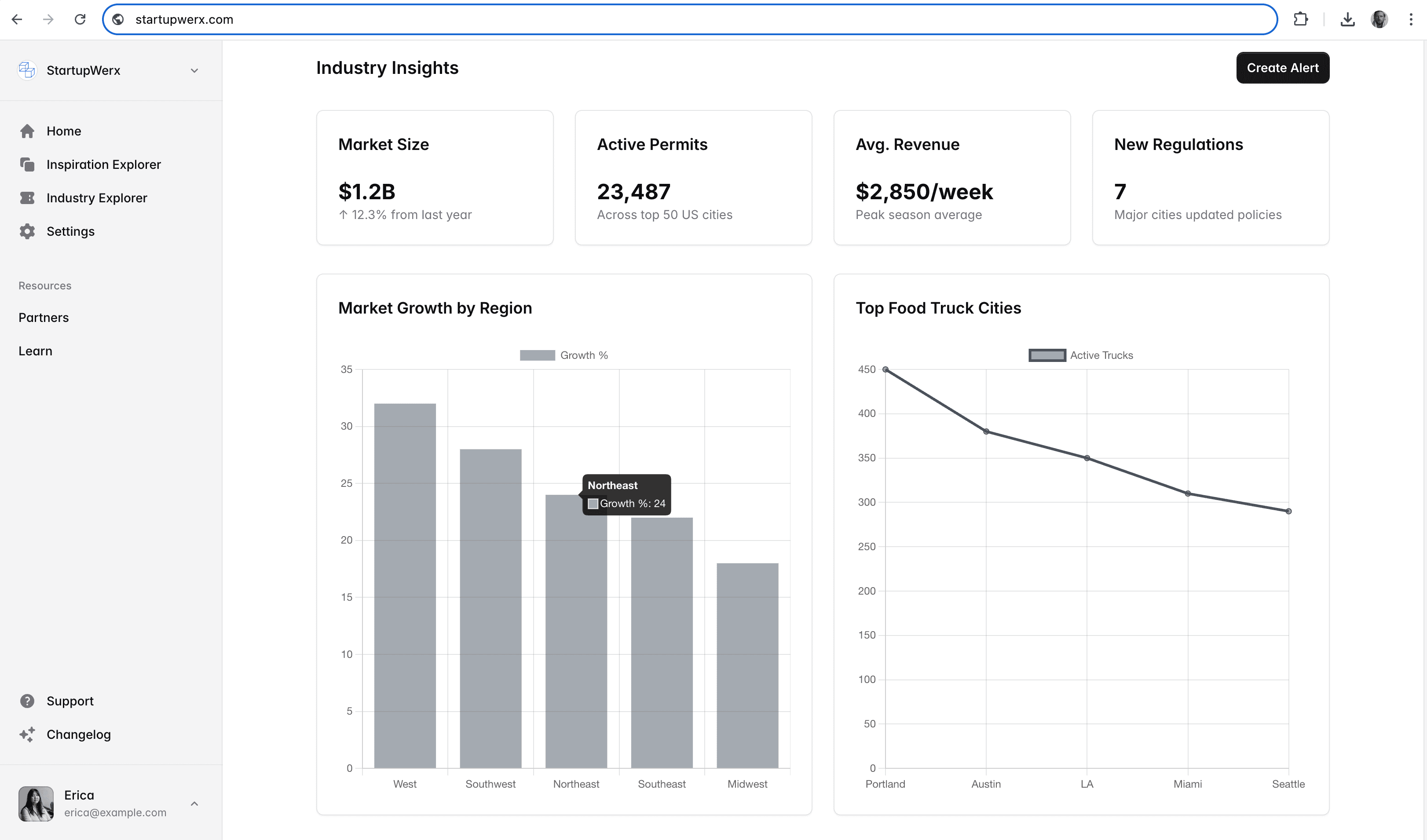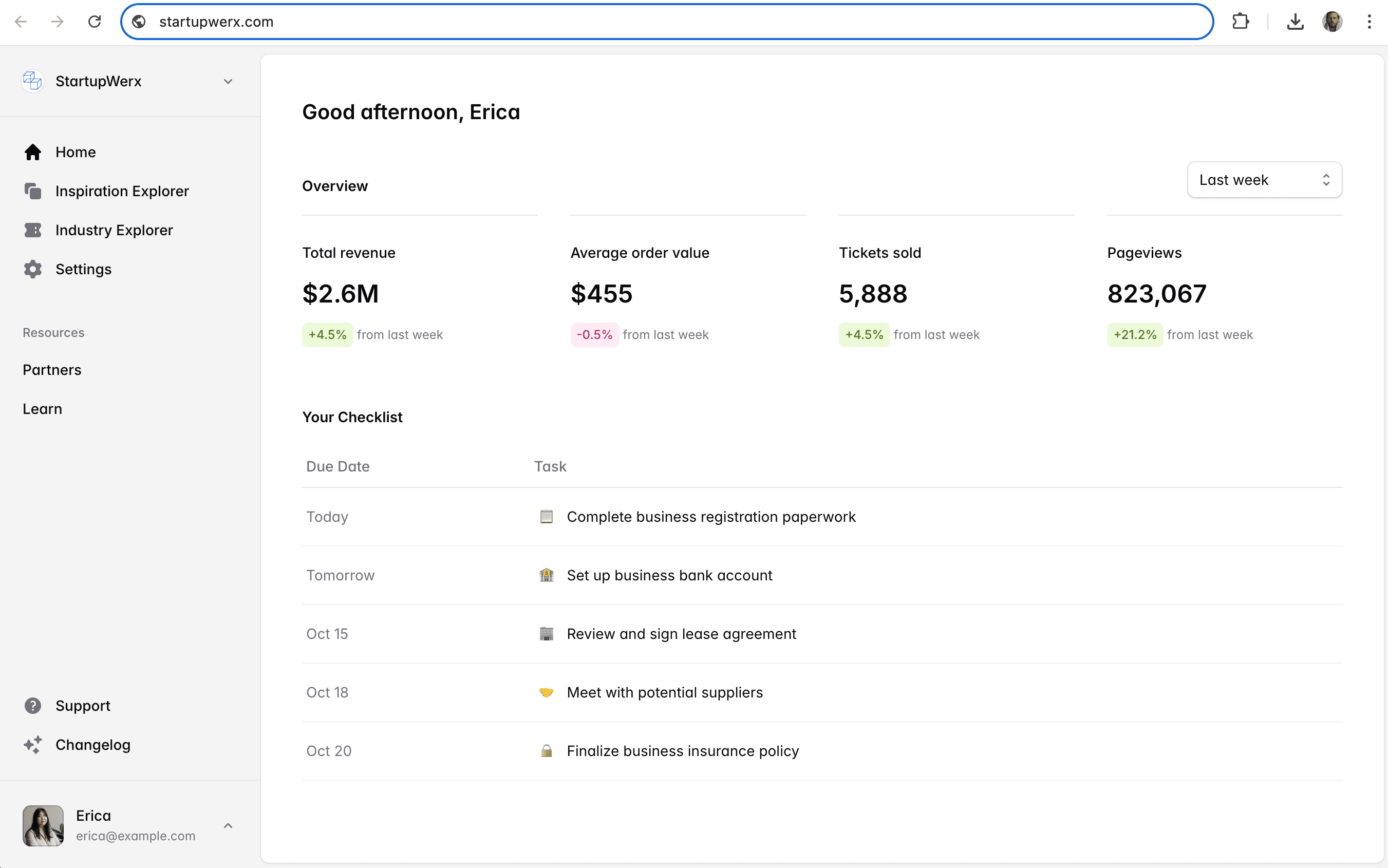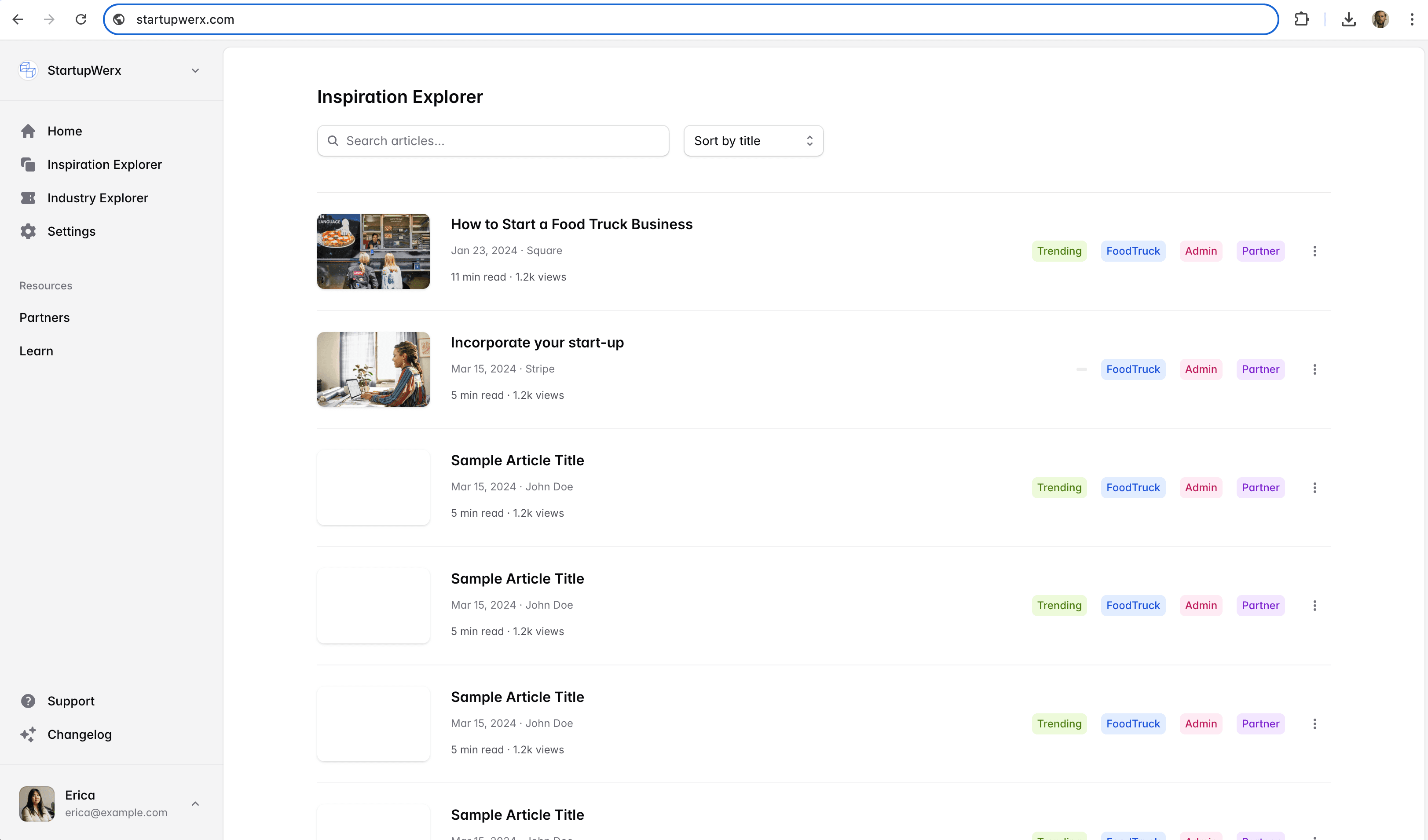 At Startupwerx, we simplify the path to entrepreneurship by offering tailored resources like our Inspiration Explorer and Industry Explorer. Our custom dashboard and curated articles, specifically selected for your business, ensure you have the right information and inspiration to make informed decisions and stay motivated.